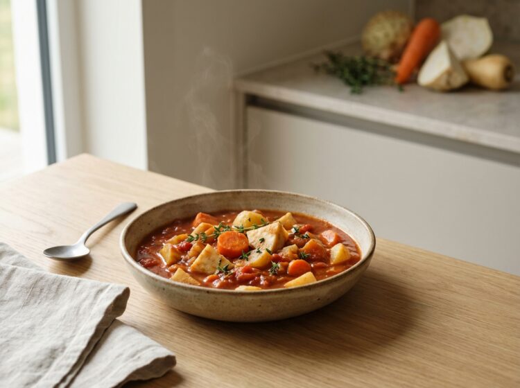 Mustig rotfruktsgryta med timjan som värmer gott. En enkel, vegetarisk gryta som passar perfekt till buffé eller middag. 8 portioner Ingredienser 500 g morötter500 g