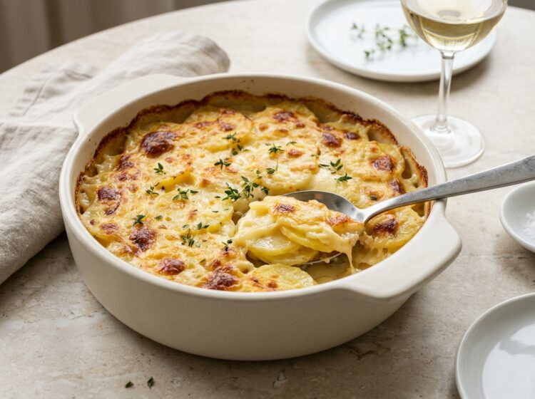 Klassisk potatisgratäng med Västerbottenost – krämig, smakrik och perfekt som tillbehör till buffé, middag eller fest. 8 portioner Ingredienser 1 kg potatis3 dl grädde2 dl