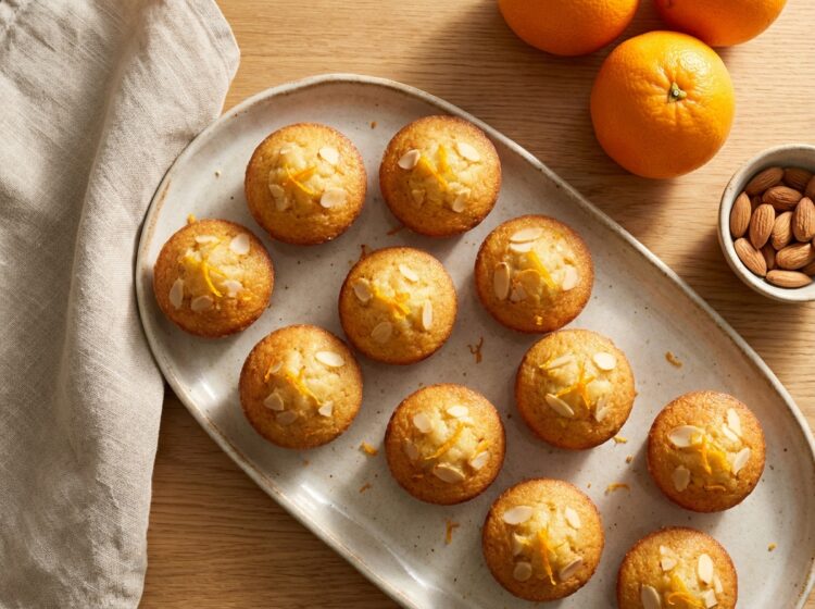 Apelsin- och mandelkaka i portionsform – saftig, enkel och perfekt som dessert eller fika. Smakar friskt av apelsin och är lätt att förbereda. 10 portioner