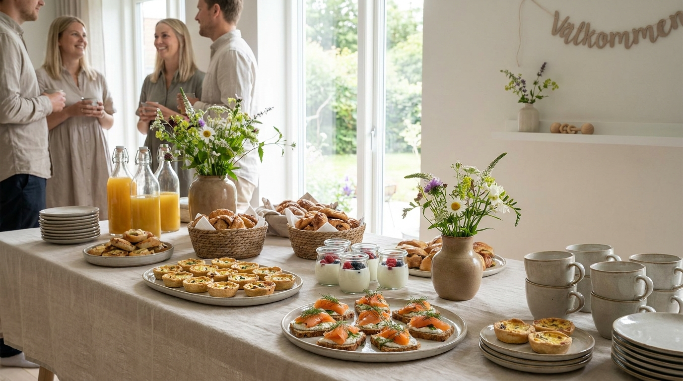Det fina med brunchcatering är att den låter dagen få vara just det den ska vara. Den tar inte över, men den sätter tonen. Den skapar något att samlas kring utan att kräva all uppmärksamhet. Gästerna kan äta när det passar, fylla på kaffe, prata vidare och låta firandet få röra sig fritt mellan matbord, soffhörn och uteplats.